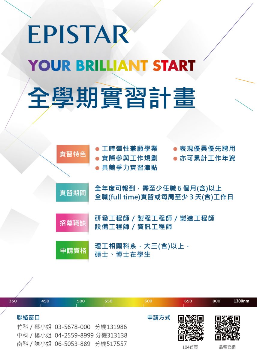 實習計畫聯絡窗口:人資部_蔡小姐(03)5678000 #131986