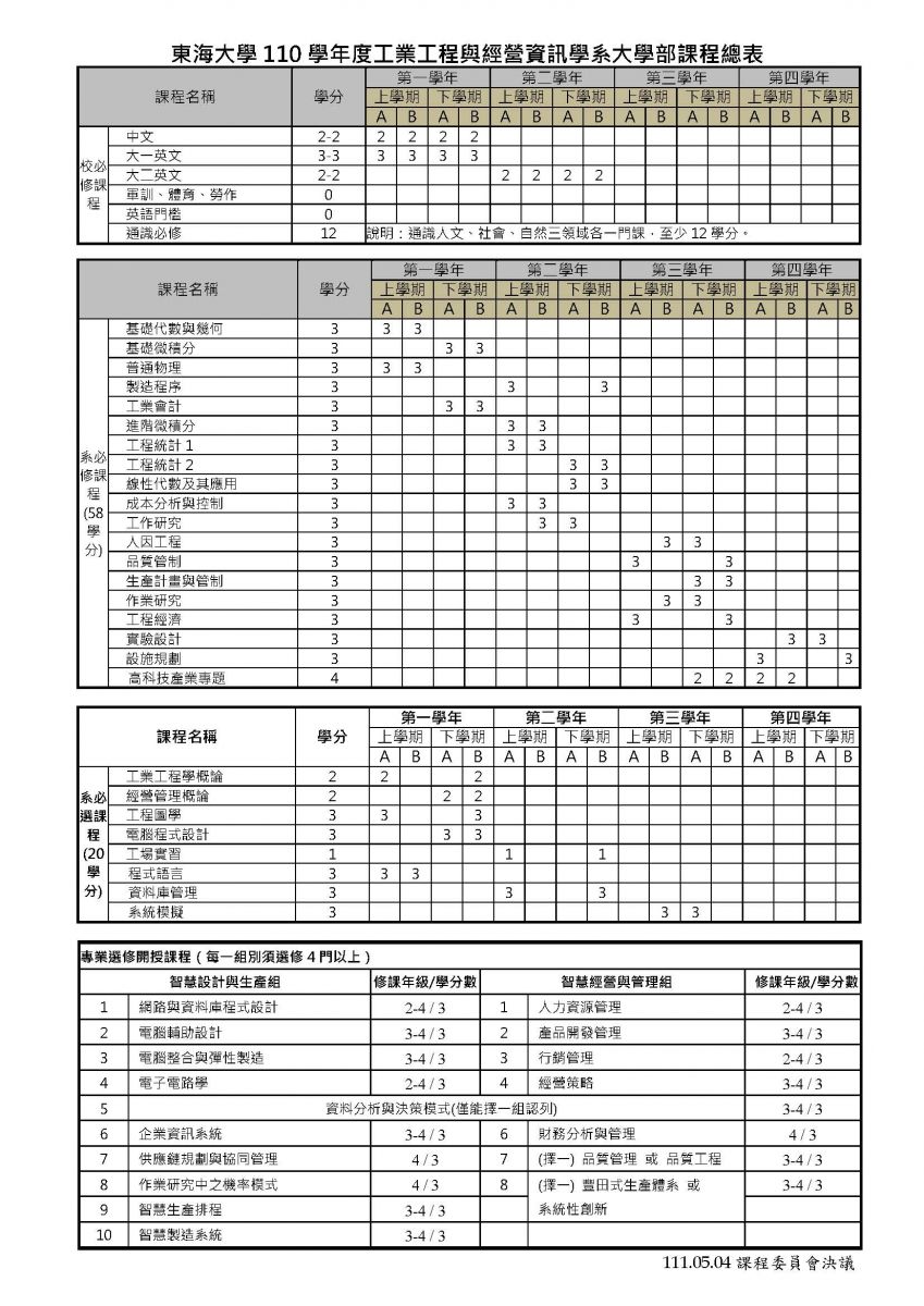 110學年度入學新生課程修課總表(111.05.04課程委員會決議)