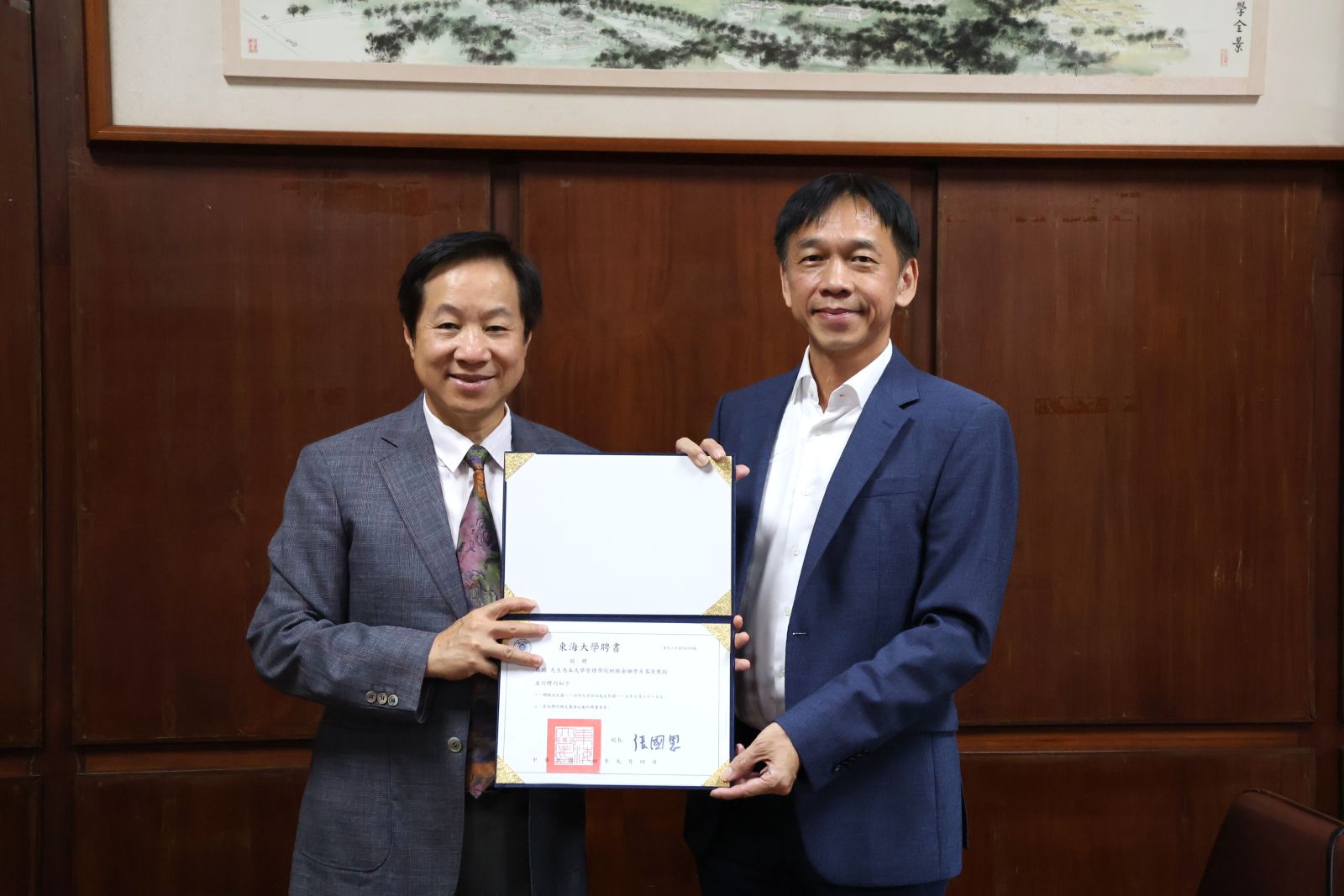 東海大學(10)日舉行聘任儀式,由張國恩校長親自頒發聘書。
