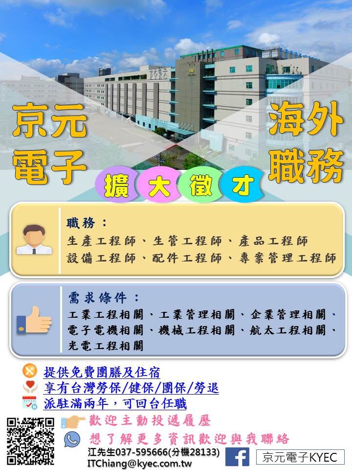 !!京元電子海外職務擴大徵才中!!