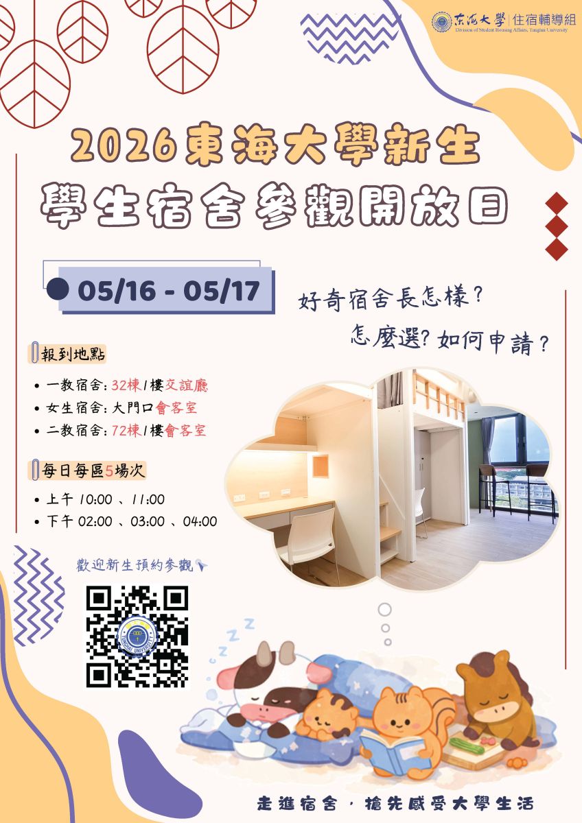 「115學年大一新生 宿舍床位申請」及「新生宿舍參觀開放日導覽活動」