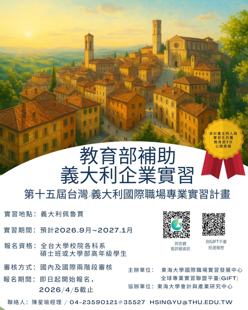 TIP 義大利國際職場專業實習(第15屆)熱烈招募中!
