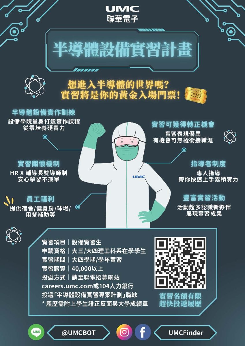 【聯華電子】大四學年半導體設備實習生招募計畫