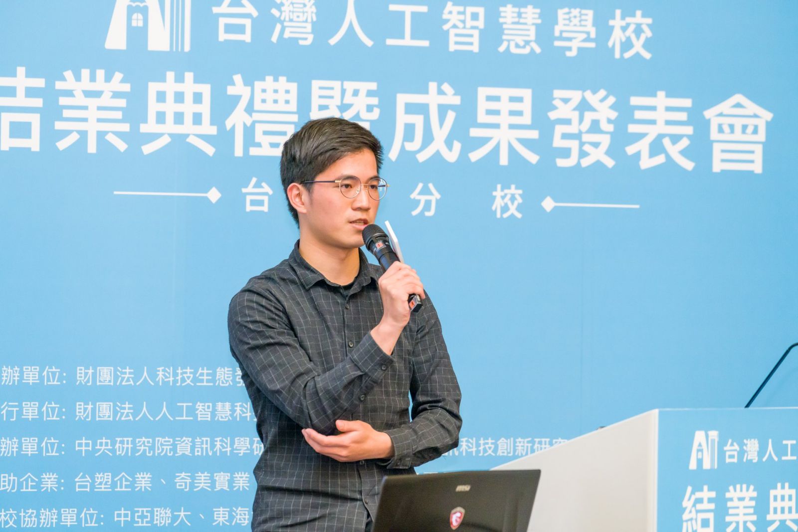 由財團法人科技生態發展公益基金會主辦的「台灣人工智慧學校」臺中分校第四期結業典禮,於2月22日假本校茂榜廳舉辦。本系碩二生陳宇修同學與來自廣達公司的洪建國、台塑公司的李蓁宜、廖聆禹、張傑富,以「智能停車場監控系統」主題獲得「技術領袖組」第一名的殊榮並獲得3萬元獎學金。