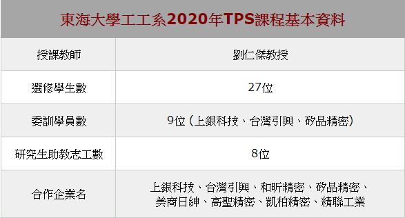 劉教授說道:「豐田式生產體系已為全球顯學,能夠將這樣的概念與工具發揮到淋漓盡致的企業屈指可數」。今年是劉教授開授TPS豐田式生產體系課程的第三十週年。能夠每年連續開授此課程,除了教授與時俱進的實務課程內容,更要感謝每學期協助學生實際應用課程內容的企業,今年度合作廠商有上銀科技、台灣引興、和昕精密、矽品精密、美商日紳、高聖精密、凱柏精密、精聯工業,總計8家。